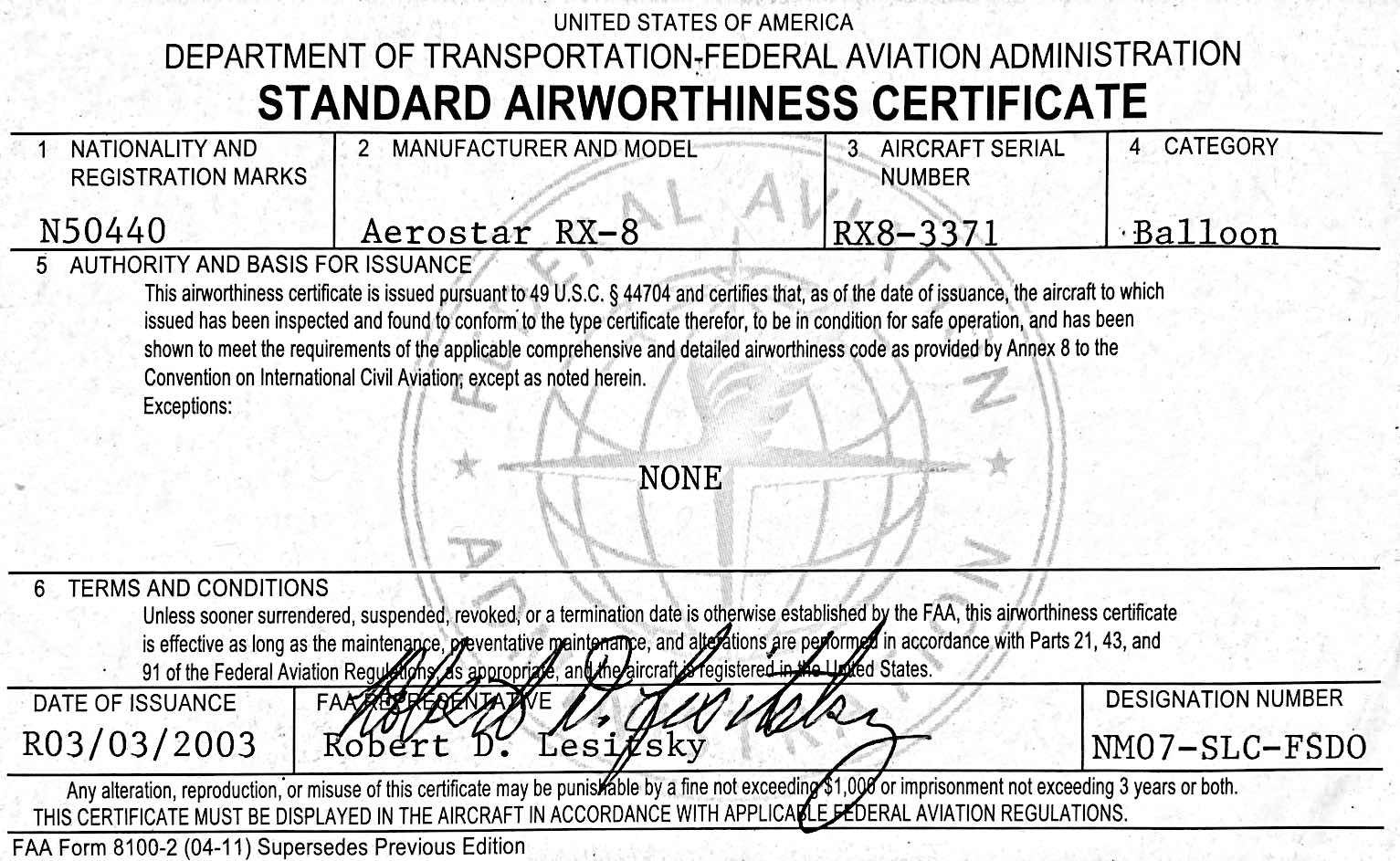 Pilot Certificate Back