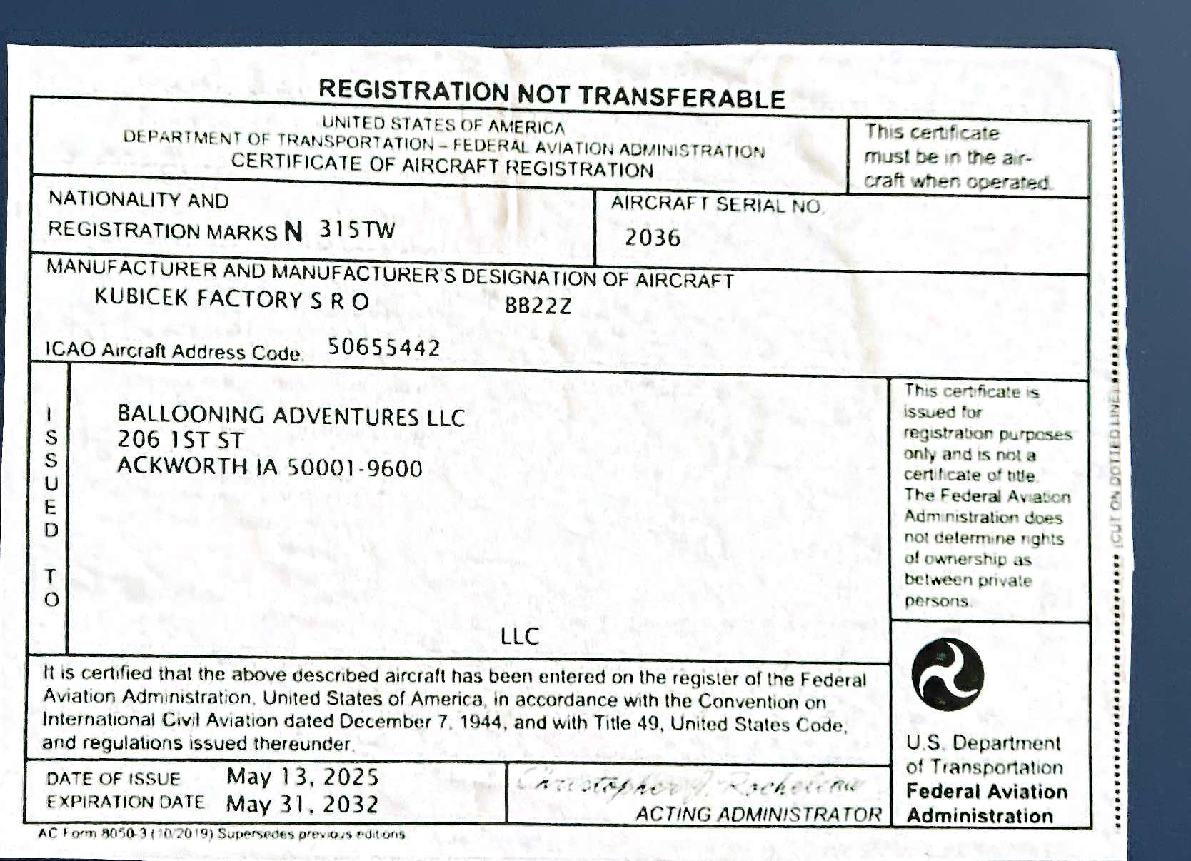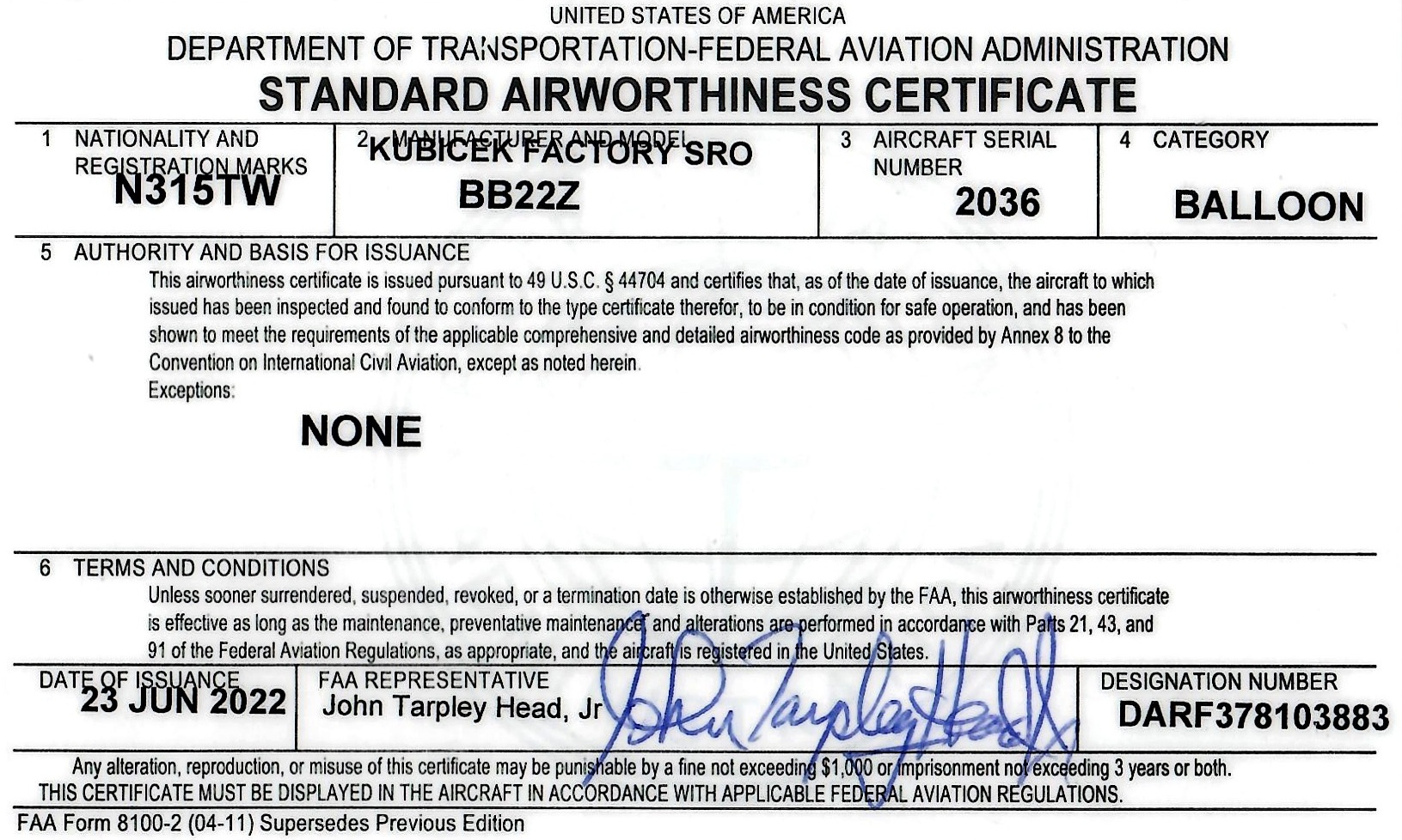 Pilot Certificate Back
